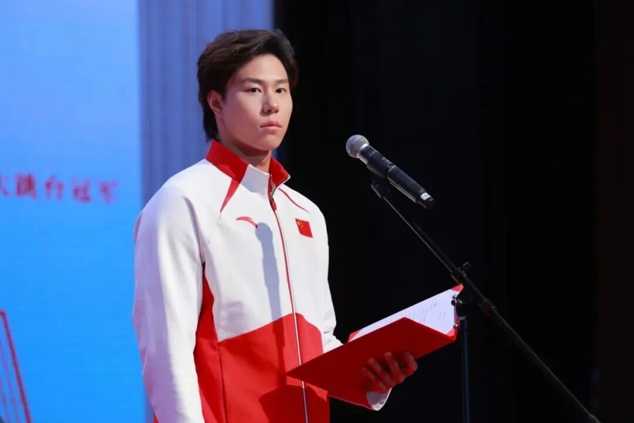 中国游泳运动员、巴黎奥运会男子4×100米混合泳接力冠军覃海洋